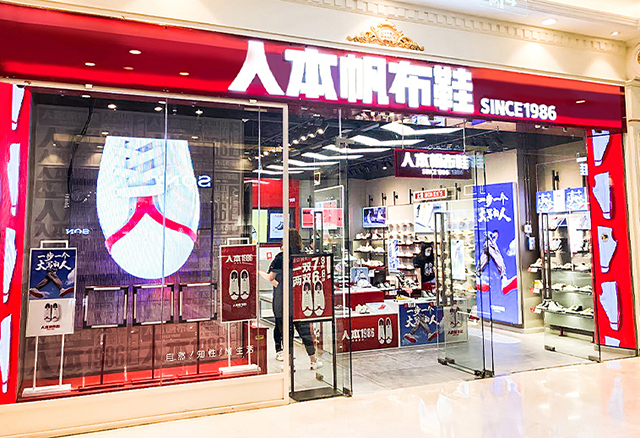 2012年人本商標(biāo)被行政認(rèn)定為中國馳名商標(biāo),迄今線下門店已經(jīng)突破1000家,每年賣出帆布鞋1000多萬雙!